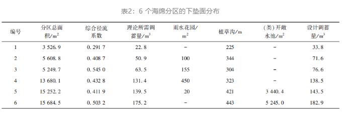 對6個分區進行調蓄指標分解,如表3所示。分區6理論所需調蓄量最大,為175.2 m3,分區1所需調蓄量較小,為22.8 m3。