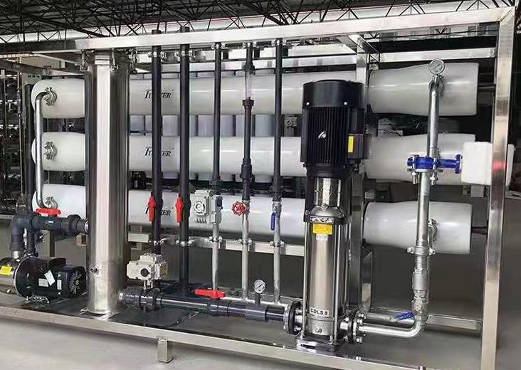 10噸反滲透工業(yè)純水設備簡要說明:RO反滲透純水機主要采用的是反滲透膜分離法,制取的水可以供人們的日常生活直接飲用和工業(yè)用水(例如電子芯片用純化水、循環(huán)冷卻水防結垢、超聲波產(chǎn)品清洗水、玻璃產(chǎn)品去表面水漬等),它的過濾精度很高,它的過濾孔徑約是一根發(fā)絲的百萬分之五,細菌、病毒的大小是過濾孔徑的5000倍,只有水分子能通過反滲透膜,因此反滲透膜可以很輕松的將水中的細菌、病毒還有一些有害病菌清除掉,這些雜質(zhì)順著污水排除設備,從而得到符合使用要求的純水純凈水。